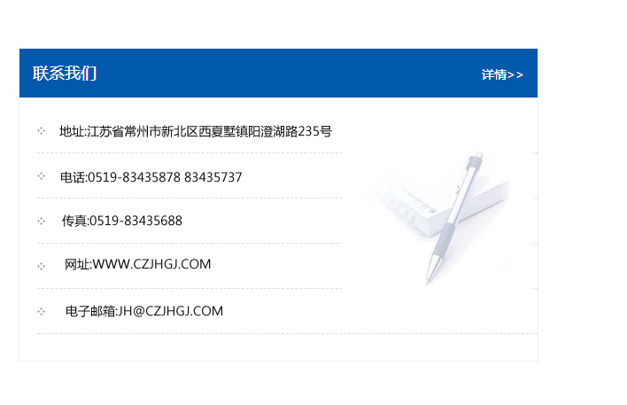 傳真:0519-83435688    郵編:213135    網址:WWW.czjhgj_com.yunxingzhiye.com    電子郵箱:JH@czjhgj_com.yunxingzhiye.com